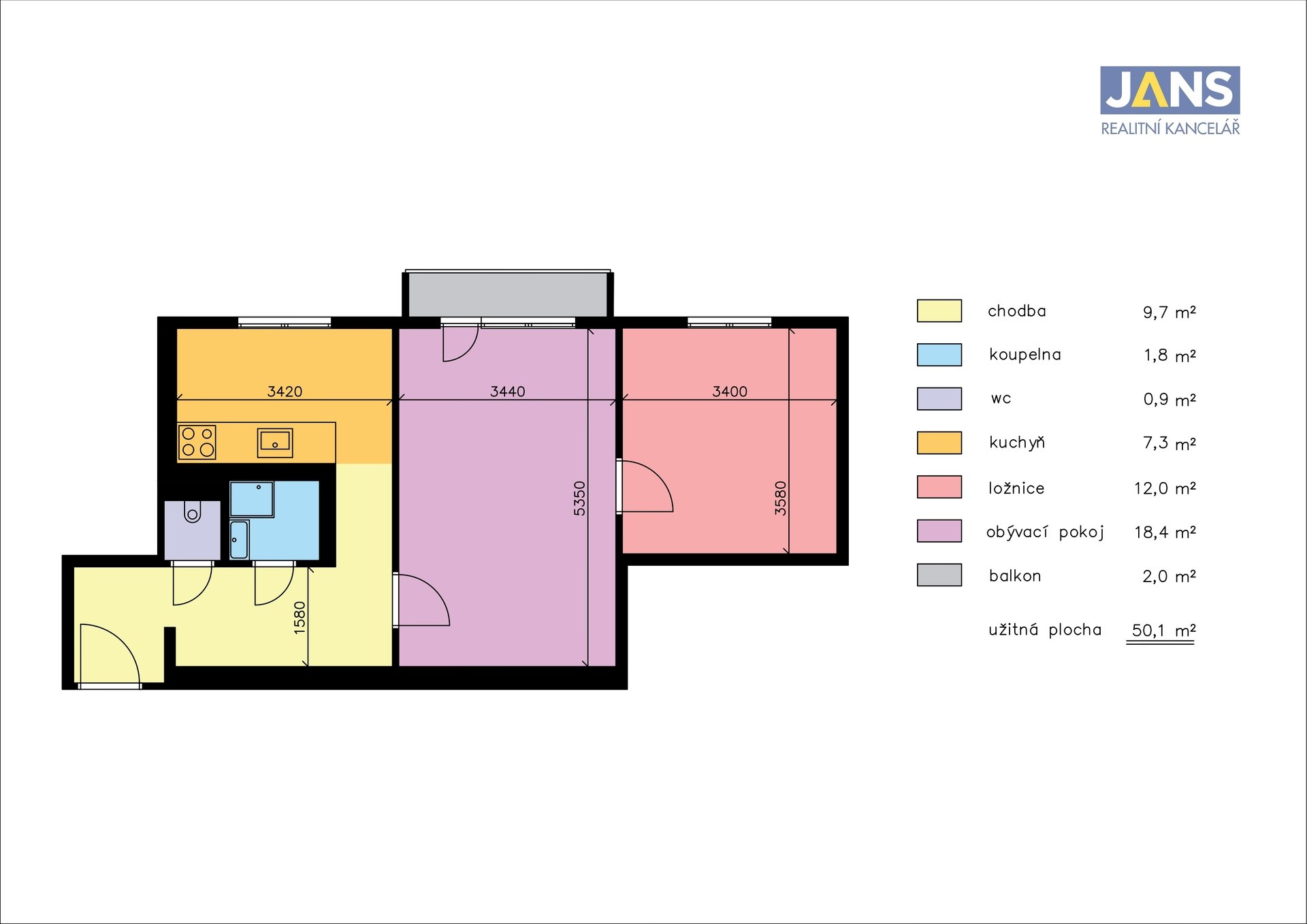 Samostatná toaleta a prakticky řešená koupelna, kde se vleze pračka i sušička zvyšují komfort každodenního života. Velkým bonusem je balkón, odkud vidíte na Mohylu a Ježník.